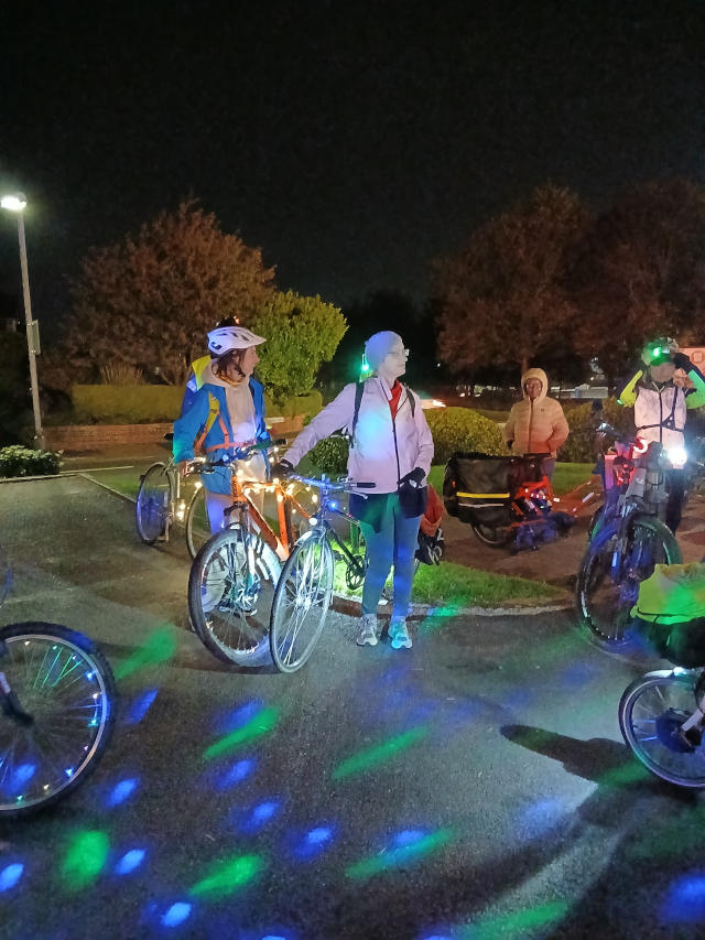Despite stormy skies, 25 riders lit up the streets of Eastbourne on Wednesday, 22nd October for Bespoke Cycle Group’s first-ever Glow Ride—a vibrant, high-visibility evening ride inspired by Cycling UK’s national campaign to champion cycling as a right for everyone.
